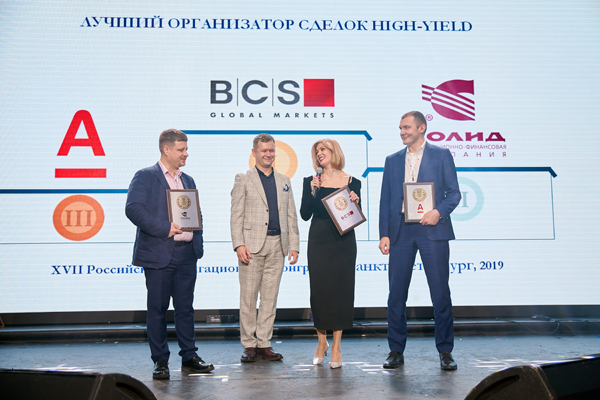 6 декабря 2019 года в рамках XI Российского облигационного конгресса в Санкт-Петербурге состоялась церемония награждения победителей премии Cbonds Awards. По итогам голосования Альфа-Банк вошел в тройку лидеров сразу в двух номинациях: «Лучший инвестиционный банк по работе со II - III эшелоном заемщиков» и «Лучший организатор сделок high-yield». Это признание профессионального сообщества еще раз подчеркивает высокий уровень экспертизы команды Альфа-Банка.