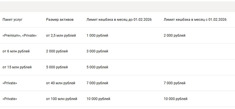 Общий лимит кешбэка применяется ко всем операциям оплаты такси, медицины, велнес, совершенным с 01.02.2026 года. Остальные условия начисления кешбэка остаются без изменений.
